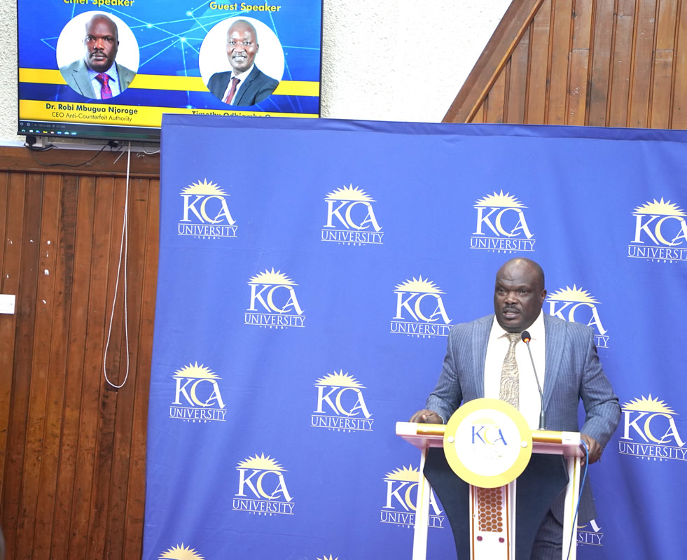 The Anti-Counterfeit Authority (ACA) was honored to participate in the 3rd Innovation and Industrialization Week at KCA University, themed “From Research to Market: Innovate. Commercialize. Transform.” The closing ceremony of the annual event hosted by the university was today graced by the Dr. Robi Mbugua Njoroge, Executive Director of ACA, who was the Chief Guest and keynote speaker.